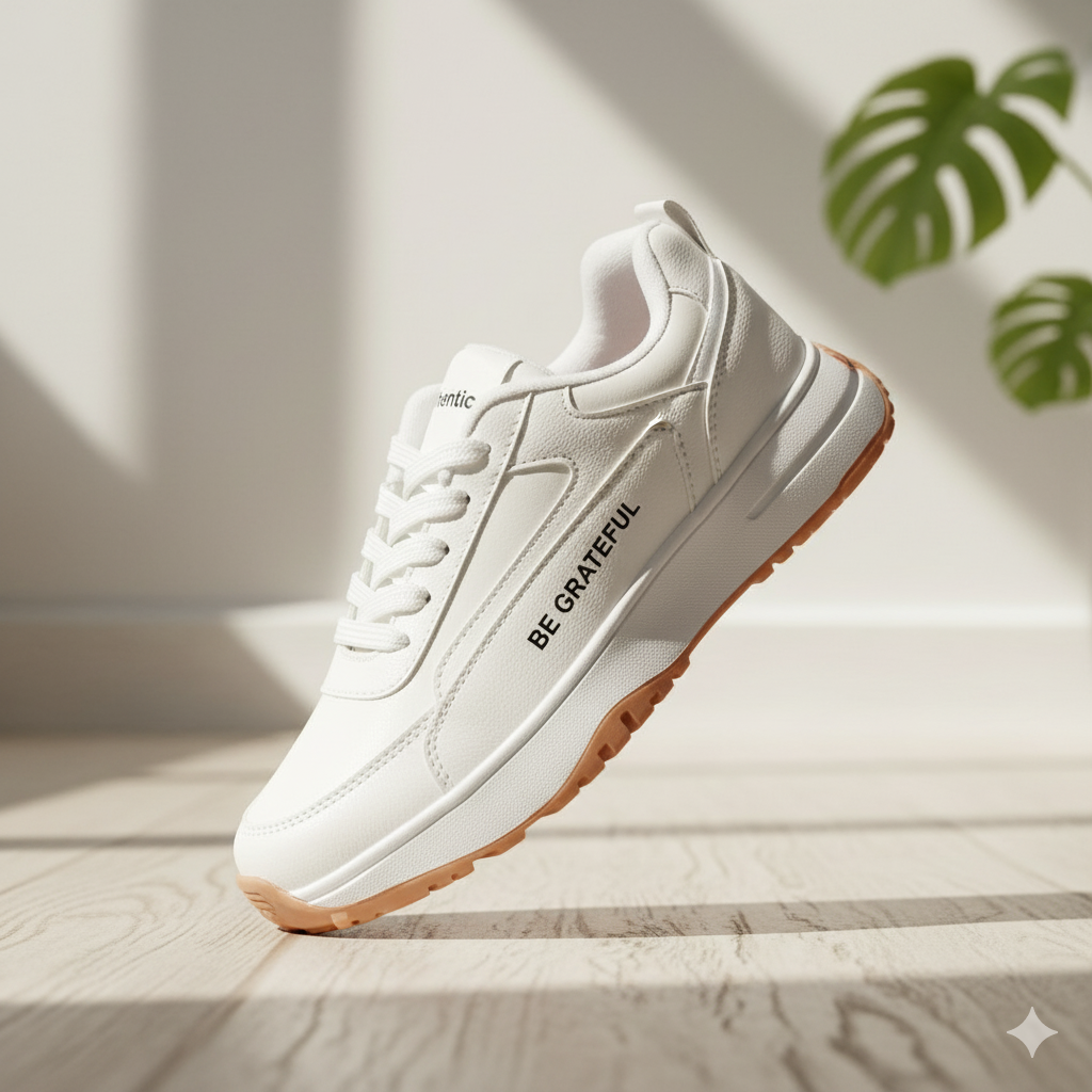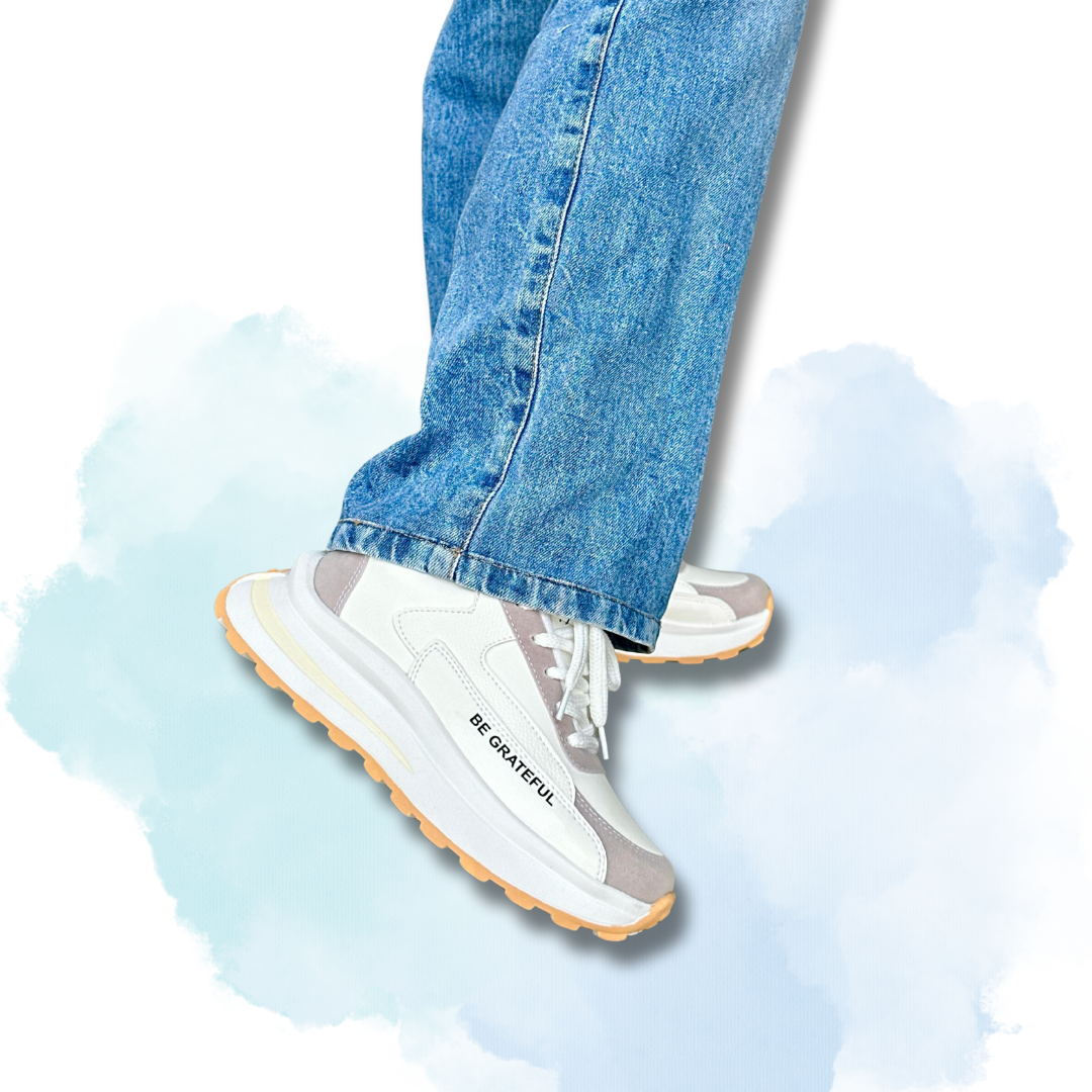 "Imagina esto: Estás listo/a para todo. Cada paso se siente ligero, lleno de energía. Tus Deportivo Loren no solo complementan tu estilo, lo elevan. Te dan esa seguridad de saber que vas cómodo, a la moda y listo para lo que sea. Desde el primer café del día hasta la última rumba, sentirás la diferencia. 'Be Grateful' no es solo una frase, ¡es una actitud que llevas en cada pisada!"